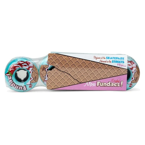 From street to park and beginner to advanced, the Fundae‘s are perfect for all terrain and all abilities, they’re the perfect hybrid. The shape of the wheel is narrow enough to pivot safely out of bails and carved in a way to avoid getting caught up on the coping.